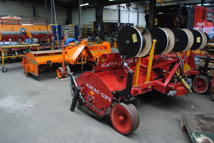 Een ronde door de werkplaats in Munnekezijl met eigenaar Beeno Oldenhuis geeft meteen inzicht in de mogelijkheden bij Pommeq. De plant- en zaaimachines maken inmiddels plaats voor schoffeltechnieken. Een tak van sport die steeds belangrijker wordt, nu het middelenpakket voor de akkerbouw steeds verder onder druk komt te staan. Met de opkomst van bijvoorbeeld de teelt van uien op ruggen, met het oog op de waterhuishouding, vraagt dat wat anders van de schoffeltechniek dan met traditionele bedden of een vlak veld. Tegelijk wordt er gekeken naar de combinatie met druppelirrigatie, waarbij de slangen in eenzelfde werkgang als de grondbewerking worden meegenomen. “Wij zijn als specialist in bol- en knolgewassen eigenlijk smal bezig, maar je ziet dat het werk zich ieder jaar steeds verder uitrekt”, aldus Oldenhuis.