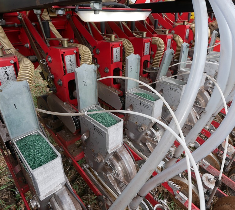 Op dit moment zaait Haaijer 3,5 eenheden uienzaad per hectare. Met een gevulde zaadbak kan drie hectare ingezaaid zijn. De zaai-units hebben een scherp zaaikouter.