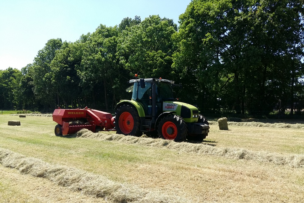 “Na 15 maart is dat een stuk minder. Dan broeden de vogels en zie je dat het grondverzet weer toeneemt, maar ook het uitrijden van mest en het opnieuw inzaaien van gras. Het persen van kleine balen voor de paardenhouderij. Het loonwerk is voor ons niet de grootste inkomstenbron, maar om zo breed mogelijk inzet baar te zijn, blijven we dit klanten zeker aanbieden en we hebben het materieel ervoor in eigen huis.”