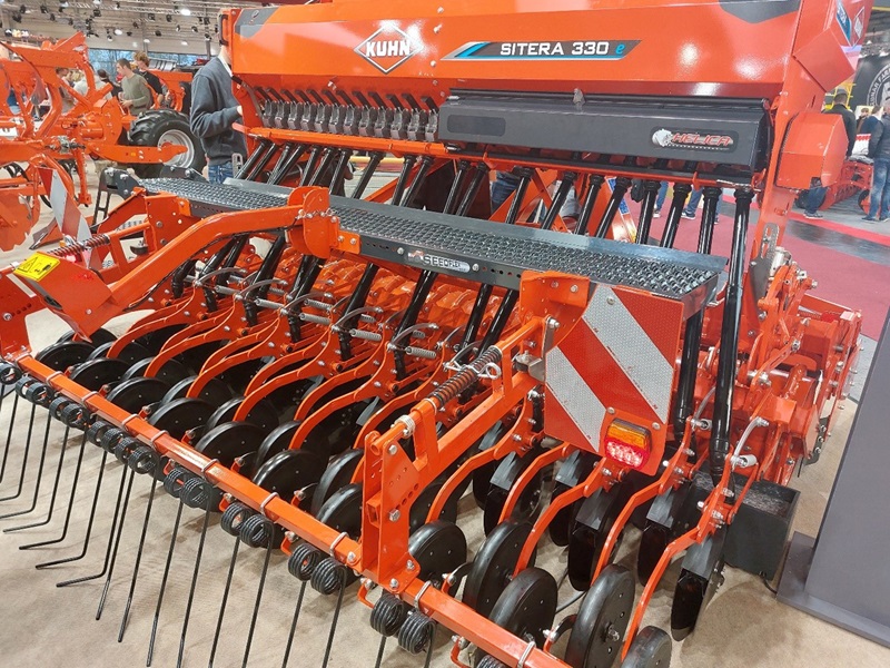 Nieuw op de stand van Kuhn is deze volledig ISOBUS aangestuurde mechanische zaaicombinatie met drie meter werkbreedte voor traktoren vanaf 120 meter. De combinatie bestaat uit de HR304 rotorkopeg met de SITERA 330e mechanische zaaiunit opgebouwd. De aandrijving van het HELICA schuifrad voor de zaadverdeling is elektronisch aangestuurd. Dat maakt het zaaien met behulp van taakkaarten mogelijk met deze machine.