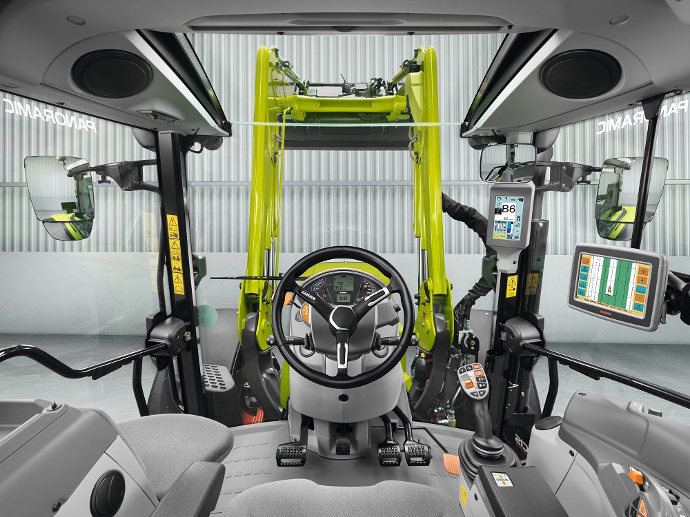 Bovendien kan de ARION 400, naast de standaard hoog dak cabine met dakraam of transparant zonnedak, nu ook worden uitgerust met een cabine met laag dak of de baanbrekende PANORAMIC-cabine als optie. Deze laatste biedt een ongeëvenaard zicht rondom in deze trekkerklasse, evenals een onbeperkt zicht op geheven voorladerwerktuigen, dankzij een doorlopende voorruit van 2,41 m².