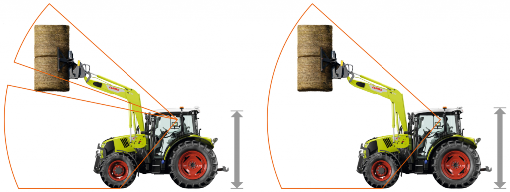De volledig geïntegreerde fronthefinrichting en de in de fabriek gemonteerde voorladers zijn eveneens een groot pluspunt. Beide kunnen gemakkelijk worden bediend met de multifunctionele bedieningshendel, met de optie om de voorlader te bedienen met ELECTROPILOT (CIS of CIS+) of FLEXPILOT. U hoeft uw hand dus niet steeds te verplaatsen. Het reactievermogen van de ELECTROPILOT kan nu aan de bestuurder worden aangepast. En dankzij de nieuwe automatische detectie van de voorlader hoeft u de hydraulische functies niet meer manueel te schakelen.