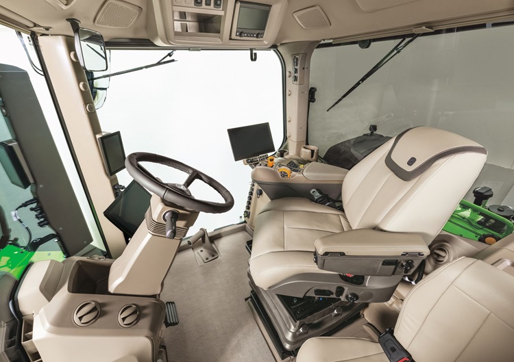 Met de nieuwe CommandViewTM 4 Plus-cabine zullen bestuurders genieten van aanzienlijk verbeterd comfort en zicht, evenals van een aanzienlijke toename van het vloeroppervlak in de cabine. De nieuwe cabinevering, met drie vrijheidsgraden, in combinatie met een geïsoleerd subframe, vermindert geluid en trillingen. De ActiveCommand Steering (ACSTM) past de stuurinspanning aan op basis van de rijsnelheid, waardoor een gemakkelijke en nauwkeurige bediening is gegarandeerd. Met slechts 3,5 omwentelingen van het stuurwiel van aanslag tot aanslag op het veld, en een verandering van de verhouding naar vijf omwentelingen van aanslag tot aanslag op de weg voor betere controle, vergemakkelijkt de 9RX-tractor de productiviteit en het comfort van de bestuurder.
