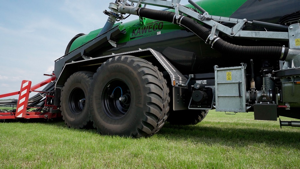 Met de aanschaf van de KAWECO Profi III maakt Loonbedrijf Sturris Ruurlo de ‘sprong’ van 20 kuub tankinhoud naar 23 kuub. De zoektocht naar meer capaciteit startte met de wens om met 900 banden te rijden. In combinatie met een schuif-as en een drukwisselsysteem resulteert dit in minder bodemdruk ondanks dat de bemester ook een slagje breder is geworden. De tank is bovendien uitgerust met een weeg- en monstersysteem zodat er geen tussenopslag of een extra transporttank benodigd is tijdens het bemesten.