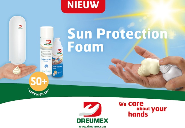 Dreumex-directeur Jan-Chris Heeger: “Als ontwikkelaar van handreinigings- en handverzorgingsproducten is het onze missie om de huid van onze eindgebruikers te beschermen, reinigen en verzorgen. Wij hebben een zonnebrand foam toegevoegd aan ons assortiment wat de hoogst mogelijke bescherming biedt tegen de schadelijke effecten van de zon. Geen enkele vorm van kanker is het afgelopen decennium namelijk zo snel toegenomen als huidkanker. Preventie van beroepsziekten als huidkanker veroorzaakt door de zon, heeft daarom bij ons de hoogste prioriteit gekregen. Preventieve maatregelen liggen onder andere in de toepassing van zonnebrandproducten om werknemers te beschermen. Met de lancering van Dreumex Sun Protection Foam SPF50+ versterken we onze positie als specialist binnen de markt en bieden we onze klanten een nog completer totaalpakket op het gebied van bescherming van de huid.”