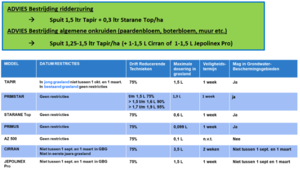 Door de droge zomers staat er veel onkruid in grasland. Beoordeel daarom nu uw grasland en voer indien nodig een onkruidbestrijding uit. Dit verhoogt de opbrengst en kwaliteit van uw ruwvoer. Bovendien zorgt het voor een schone start volgend voorjaar.