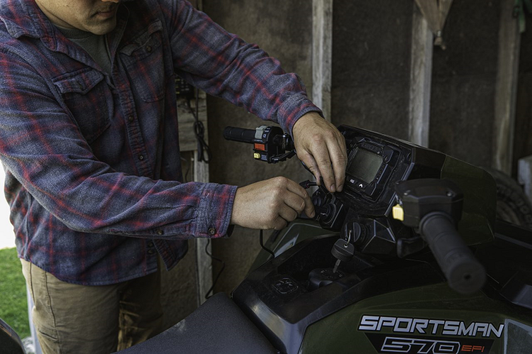 De nieuwe Sportsman 570 heeft een grotere, krachtigere 18AH-batterij die 78 procent meer capaciteit levert bij het starten van de het voertuig, de zogenoemde koudstartversterkers. De batterij is verplaatst naar een plek onder het voorrek voor gemakkelijke toegang voor onderhoud, en er is een handige batterijoplaadpoort op de pod.