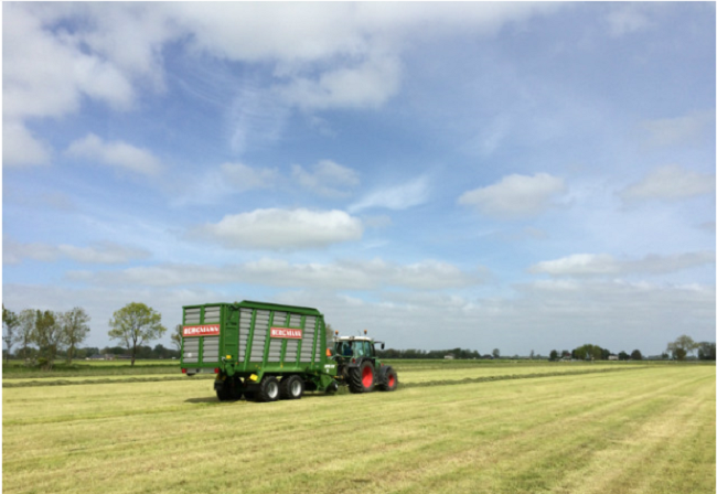 De eerste Bergmann Repex 32K in Nederland is het land opgegaan. Via Abemec Onderdendam is de nieuwe Repex 32K bij melkveehouder A.W. Kooman te Adorp (Groningen) ingezet. Als landbouwmechanisatiebedrijf maakt Abemec Onderdendam een stap opzij voor Bergmann, zij doen dit omdat hun klant al met een Bergmann opraapwagen rijdt die aan vervanging toe is en een mooie oplossing ziet in deze Bergmann Repex 32K. De heer Kooman heeft vanaf de introductie op de AgriTechnica van 2013 de opraapwagen al in beeld. Het laadvolume van 32 m³ DIN past precies bij zijn bedrijf en de wagen is “afgeladen” met allemaal nieuwe technieken. Curvebaan gestuurde 6-balken pick-up, invoer met 41 messen, dikke stalen bodem, 2-zijdige aandrijving van de 4 bodemkettingen, verlaagde bodem, meelopen gestuurd tandem en volledig elektrisch /hydraulische bediend via de BCT-20 unit.