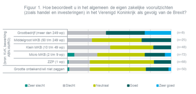 Dat komt naar voren uit een enqu?te die de Kamer van Koophandel (KvK) eind vorig jaar hield onder Nederlandse ondernemers met handels- of investeringsbelangen in het Verenigd Koninkrijk. De KvK gebruikt deze resultaten voor zijn Brexit Barometer. Bijna een kwart (23%) van alle bedrijven die handel drijft met of investeert in het Verenigd Koninkrijk (VK), beoordeelt zijn eigen zakelijke vooruitzichten na een brexit als ‘goed’ tot ‘zeer goed’.