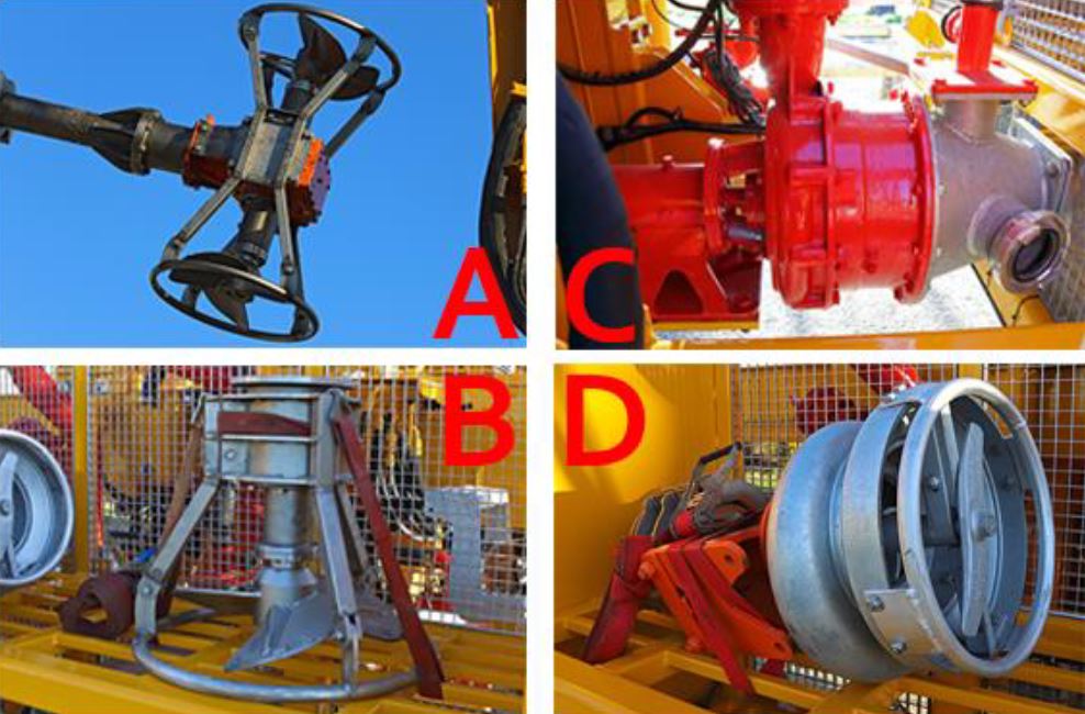 - D. Met een centrifugaalpomp (baggerpomp) aan het uiteinde van de 35 meter lange mast zijn silo’s, putten, vijvers en bassins leeg te pompen of over te pompen naar containers. De vloeistof is over een afstand van ruim 1.000 meter te verpompen.