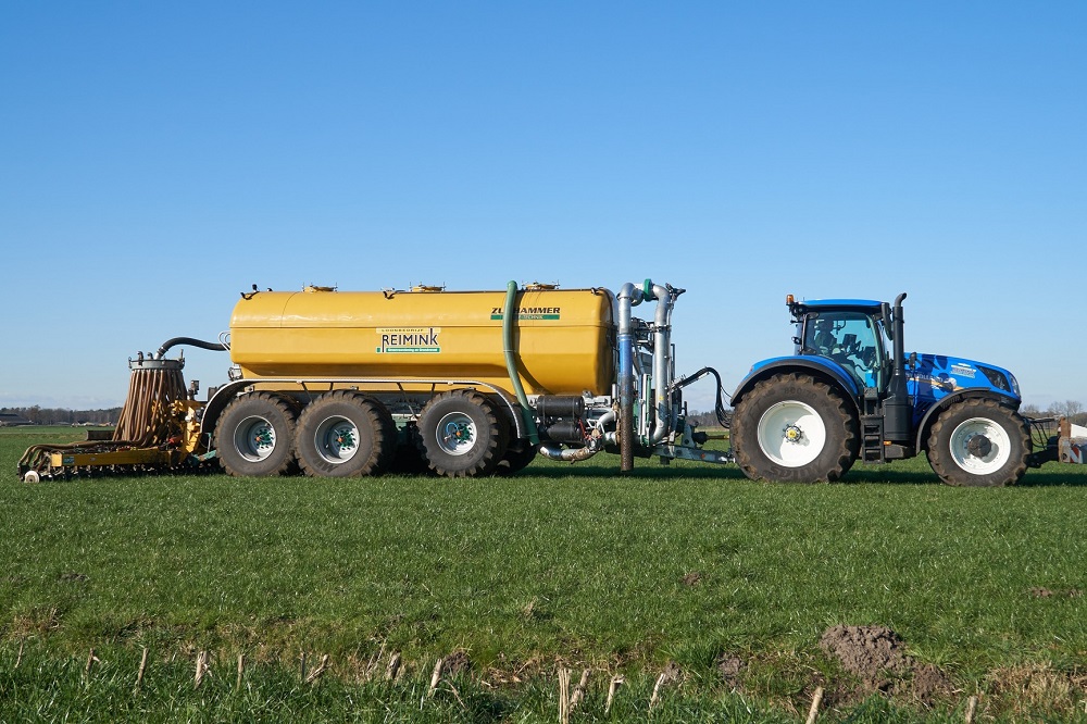 Achter de tank heeft Reimink doorgaans een bestaande Duport-bemester met een werkbreedte van 8,70 meter gehangen. “We zijn met ons loonbedrijf eigenlijk alleen in de veehouderij actief, maar voor akkerbouwers doen we ook nog wat bemestingswerkzaamheden.” De Zunhammer is sinds februari op het Overijsselse loonbedrijf. Vanaf 16 februari is de nieuwe tank flink getest. “In het eerste gras hebben we al behoorlijk wat meters gemaakt. En daarmee durf ik wel te zeggen dat de Zunhammer-tank ons uitstekend bevalt.”