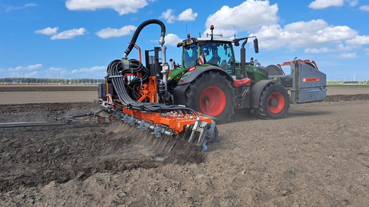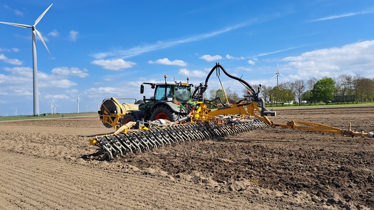 Daarnaast zijn er methodes zoals het gebruik van een kopeg, zoals op het perceel van Assies afgelopen najaar en dit voorjaar is toegepast. Sommige telers kiezen voor nog een extra nabewerking, zodat het perceel vlakker is en de mest gelijkmatiger in de grond kan zijn gebracht. Dat blijft echter een uitdaging. Als je de grond te fijn maakt, kan de mest gaan aankoeken aan de sleepslang, wat een soort dozereffect veroorzaakt.