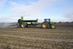 Akkerbouwers Simon Wieringa en Manon Huizinga uit het Groningse Hellum strooien compost en kalk over hun akkers met de allereerste Fliegl-schotelstrooier in de Benelux. De hydraulisch geveerde dissel en het onderstel van de ... Lees meer