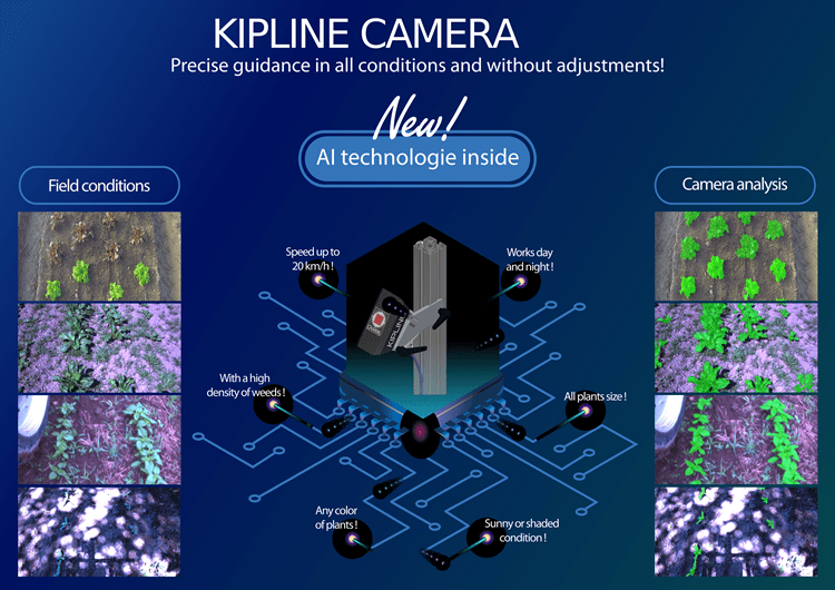 De KIPLINE-camera maakt gebruik van AI om gewasrijen te herkennen, ook bij wisselende lichtomstandigheden, schaduw of hoge onkruiddichtheid. Volgens de fabrikant werkt het systeem autonoom en zonder handmatige kleurafstelling. Hierdoor kan de schoffelmachine nauwkeurig worden geleid, ongeacht gewastype of groeistadium. Het systeem is bedoeld om precisie-onkruidbestrijding te vereenvoudigen en wordt vanaf 2026 beschikbaar voor CARRÉ-schoffels en sideshiftsystemen.