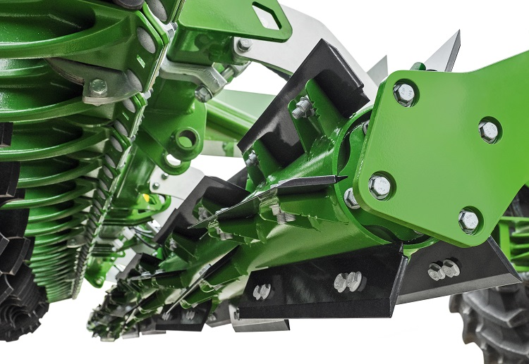 De schijven zijn voorzien van een speciaal profiel zodat die hun werkdiepte behouden, zelfs onder de zwaarste omstandigheden. De schijfafstand van 25 centimeter heeft zich inmiddels bewezen. De overlapafstand van 12,5 centimeter zorgt voor volledige bewerking van het grondoppervlak. De aanpassing van werkdiepte is variabel en kan mechanisch worden doorgevoerd met instelbare spillen op de machine of hydraulisch vanuit de cabine.