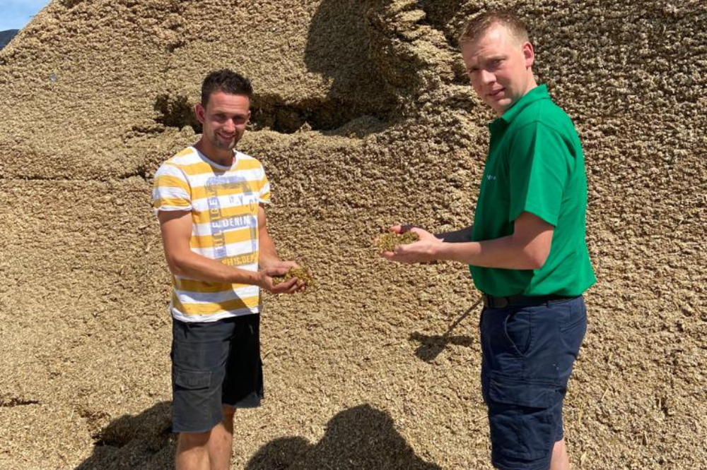 Door de bank genomen verloopt de conservering van mais meestal voorspoedig. Het is vooral broei en schimmelvorming dat de nodige aandacht vraagt. Zeker ook dit jaar. De afrijping van de mais gaat snel de laatste weken. Helaas zien we door de droogte op de lichtere percelen ook veel (deels) verdroogde mais staan. Op sommige plaatsen in de Achterhoek bijvoorbeeld gaat de eerste mais daardoor nu al de kuil in. Wie nu al moet oogsten, besteed tijdens het inkuilen best de nodige aandacht aan mogelijke broei in de kuil. Verdroogde mais is immers extra broeigevoelig. Arjan Geerets (Pioneer) vertelt: “Het drogere product is moeilijker aan te rijden, waardoor je minder verdichting krijgt in de kuil. Daarnaast bevat de verdroogde mais mogelijk meer suikers, omdat deze niet goed omgezet zijn naar zetmeel in de kolf. Dit in combinatie met te weinig verdichting zorgt voor grote kans op broei.”