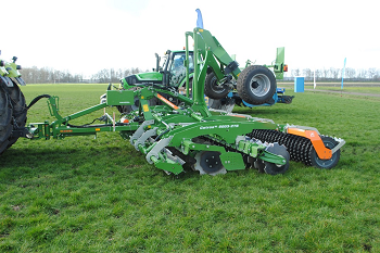 Eigenlijk toonde landbouwspecialist Zonna uit Beilen vier machines waarmee groenbemesters in combinatie gemaaid en ingewerkt kunnen worden. De Terrano 3FX is een multifunctionele cultivator, die een buizenwals met verschillende rollen heeft. De schijven zitten op één arm om verstopping tegen te gaan. Ze blijven recht staan. Het gaat om kleine schijven, die zo een vlak zaaibed geven. Aan de voorkant van de trekker is een Major cirkelmaaier geplaatst met tandwielkasten, die per as aangedreven zijn. De tweede uitvoering is Cultro 3 CT dubbele messenwals in combinatie met de Joker 3 CT schijveneg, die zo zijn uitgevoerd, dat aan de voorkant vlak wordt gezaaid. ‘Hoe vlakker, hoe beter’, is de overtuiging van Horsch. Deze uitvoering kan je met een snelheid tot twintig kilometer per uur mee uit de voeten.