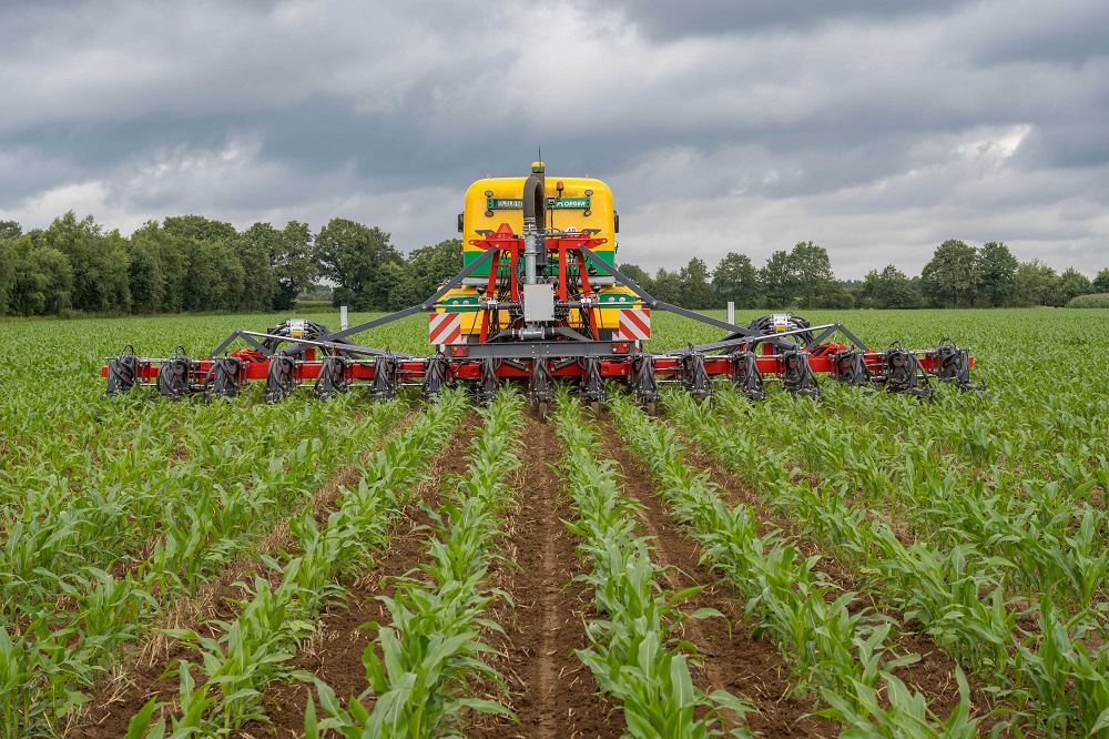 De mestuitlopen bevinden zich voor de schoffel, zowel links als rechts van de maïsplant. De roterende schoffel, die direct achter de mestuitloop zit, mengt vervolgens de mest met de aarde. Verbranding aan de maïsplant door de sterk geconcentreerde meststoffen wordt daardoor voorkomen. De schoffel met roterende werking roert de met mest verrijkte aarde naar de plant toe. De voedingstoffen komen daar waar de maïsplant ze nodig heeft, namelijk zo dicht mogelijk bij de wortels.