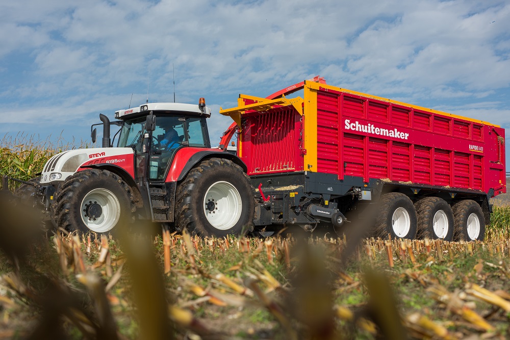 Met de komst van de Rapide 8400 Plus lanceert Schuitemaker een nieuwe dubbeldoelwagen met een totaal inhoud van 48m³. De wagen wordt standaard geleverd op banden BKT 750/60 R26,5 FL630 Super. Deze band is 157 cm hoog. Optioneel zijn verschillende maten en merken banden leverbaar tot de maximale diameter van 162 cm bij een breedte van maximaal 85 cm. Het voordeel van de grotere banden en het optionele bandendruk – regelsysteem (assen zijn hier standaard op voorbereid) is het behoud van de bodemstructuur vanwege lagere bodemdruk. De vermindering van bodemdruk is belangrijk tijdens de maïs – en grasoogst aangezien er geregeld op natte, moeilijk begaanbare percelen geoogst moet worden.