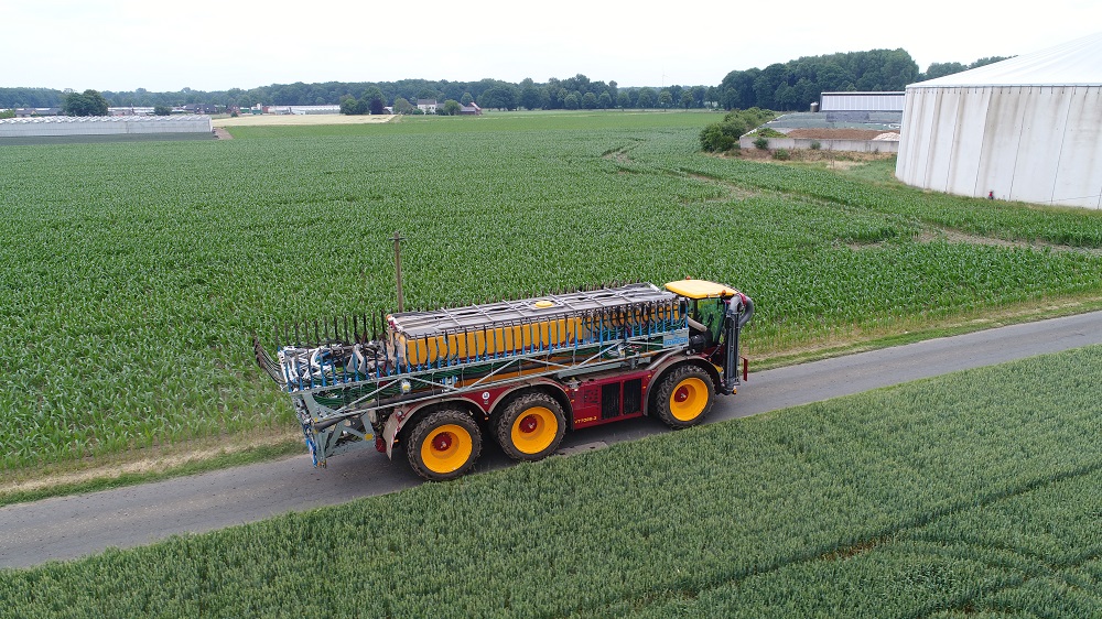 Special voor in mais, biedt Vredo een oplossing met dubbele rijencultuur maiswielen. De VT7028-3 kan met deze dubbele smalle wielen worden uitgerust en is dan in combinatie met een brede slangsleep- of sleepvoet bemester een inzetbaarheid en capaciteits verhogende optie.