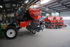 Simon Noordhoek van akkerbouwcombinatie VOF Nieuw Campen, Wim van der Heijde, van het gelijknamige loon-, handels- en sproeibedrijf uit Kamperland en Maurice Vijverberg van MacLouis uit Zierikzee, hebben afgelopen winter samengewerkt aan een oplossing om met de bestaande uienmechanisatie op anderhalve meter toch een bed van drie meter met elf rijtjes (plant)uien te kunnen oogsten. Hiervoor is aan de bestaande uienklapper een hydraulisch aangedreven rooischijf gemonteerd die het zesde rijtje rooit en deze tussen het vierde en vijfde rijtje neerlegt.