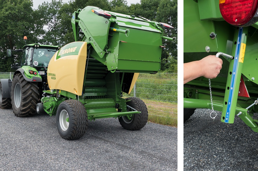 Wat ook nieuw is, is de ultrasone sensor, die de tastbeugel voor het herkennen van een baal op de wikkeltafel vervangt. Daarnaast heeft de baalkantelaar een loopwiel gekregen, zodat bij het afleggen van de baal de grasmat wordt ontzien en geen beschadigingen veroorzaakt. Ook heeft Krone het elektronische en hydraulische gedeelte van de pers vernieuwd en de KMC boordcomputer aangepast. Optioneel is er nu ook LED werkverlichting voor de Comprima verkrijgbaar; zo kan ook ’s avonds comfortabel worden doorgewerkt.