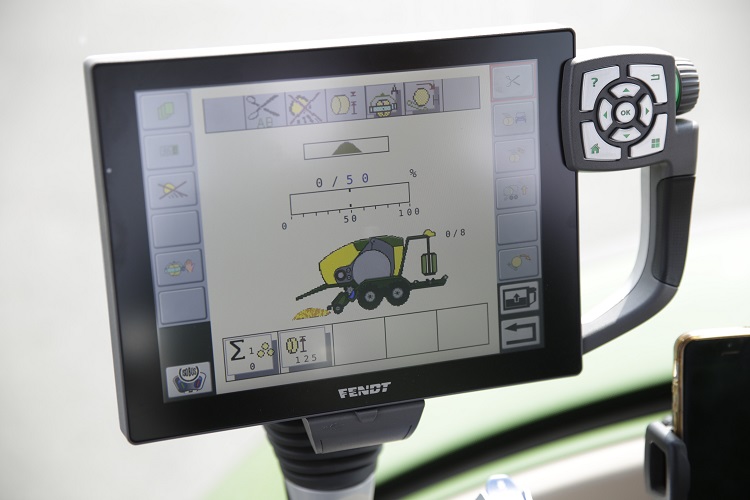 Als de perskamer gevuld is, wordt de trekker door het TIM-systeem automatisch gestopt. De baal wordt voorzien van netbinding, waarna de perskamer open gaat om de baal uit te werpen en vervolgens weer sluit. Dit proces is nu volledig geautomatiseerd. Dit verkort de momenten van stilstand, waardoor ook de capaciteit van de pers wordt verhoogd. Bovendien zorgt het voor arbeidsgemak.