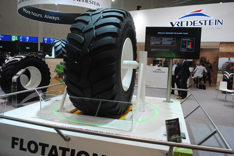 De DLG-rapportage kon op de Agritechnica aan het publiek worden gepresenteerd. Apollo Vredestein toonde daar ook twee nieuwe banden, die volgens Straatman ook voor Nederlandse loonwerkers interessant zijn. De Flotation Trac 900/56 R38 van 2,15 meter hoog is speciaal voor mesttanks ontworpen. “Vooral voor het uitrijden van mest is deze brede hogeband interessant. Veel Nederlanders spreken mij hierop aan, omdat men op zoek is naar een band die makkelijk rolt en tegelijk het land ontziet. Deze uitvoering is smaller, geeft een mooiere footprint, slijt minder snel en zorgt voor minder druk op de bodem”, legt Straatman uit, “De 1050/50R32 variant heeft bij 20 ton aslast in het land minimaal1,8 bar nodig. Deze in dezelfde situatie slechts 1,2 bar, hij is daarnaast 30 centimeter hoger  waardoor hij 22 procent lichter rolt. Bij uitstek een band, die onder een uitrijtank kan.”