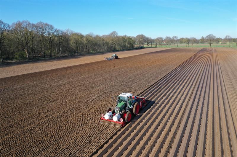De pootmachine komt dit voorjaar zo’n vijf weken in actie om de 250 à 300 hectare te planten. Jan Berkers rekent voor het gemak met een capaciteit van zo’n 60 hectare per week. Bij optimale pootomstandigheden is 13 hectare per dag mogelijk.