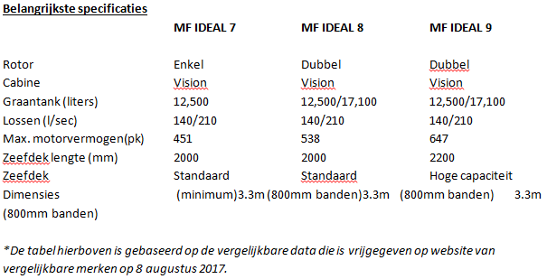 - Drie nieuwe combine modellen, met enkele en dubbele maaiborden – de 451pk MF IDEAL 7, de 538pk MF IDEAL 8 en 647pk MF IDEAL 9, plus ParaLevel versies.