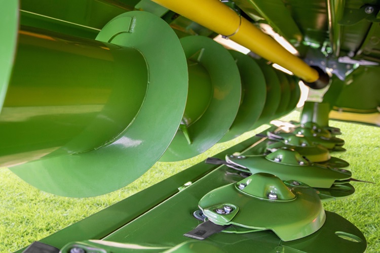 Dankzij de transportvijzels van 45 cm diameter kunnen ook arealen met grote hoeveelheden gewas probleemloos zijn geoogst. De vijzels en de beproefde EasyCut-maaibalk zijn evenwijdig aan elkaar geplaatst en zijn voor een optimale gewasstroom vanaf de buitenkant aangedreven. Daardoor blijft er veel ruimte over voor zwaden met een groot volume. Klavergras en luzerne zijn omzichtig in het zwad afgelegd en tegelijkertijd zijn brokkelverliezen voorkomen.