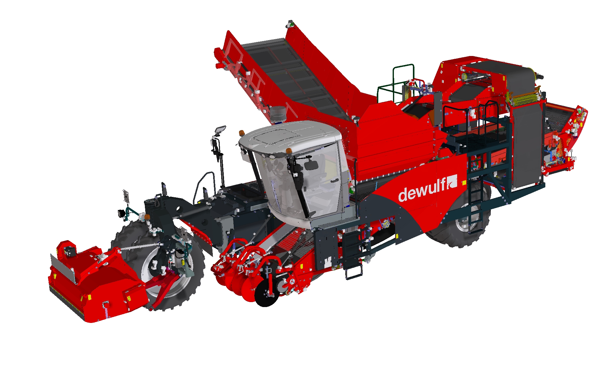 De RA3060 Essential is ondertussen al de 10e variant van de R3060. Geen enkele zelfrijdende 2- rijige zeefbandrooier kan zo afgestemd worden op de individuele behoefte van een teler als deze machine van Dewulf. Zo lanceerde de fabrikant vorig jaar nog een versie met twee loofrollen om antwoord te bieden aan de vraag om beter te kunnen omgaan met aardappelvarianten met extreme loofgroei.