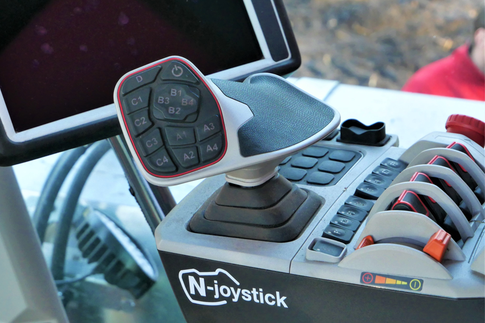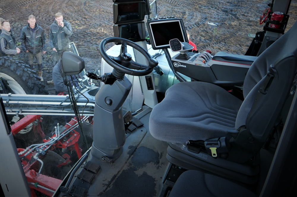 Nieuw is ook het design van bedieningshandel in de cabine waarop de hele handpalm rust zodat met de duim de belangrijkste controls bediend worden. De touchscreen control unit is nieuw vormgegeven maar de bediening is herkenbaar vanuit andere Dewulf oogstmachines.
