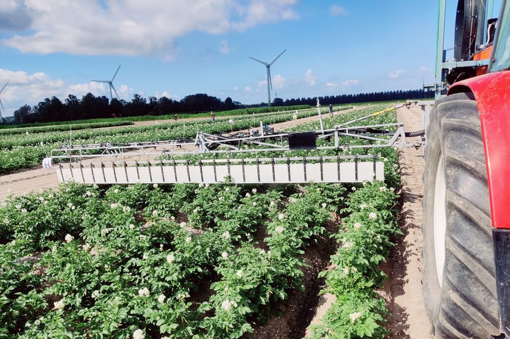 Steinbusch roemt de volledig automatische damdrukregeling in samenhang met de knikdissel. De diepteregeling en damdrukontlasting kunnen voor iedere rij onafhankelijk ingesteld worden. Daarnaast kan de machine binnen vijftien minuten omgebouwd worden om uien te rapen. Het hele koppelingsproces kan gemakkelijk door één persoon zonder speciaal gereedschap worden uitgevoerd. “Doormiddel van het ISObus systeem wordt de uienbek meteen herkend en worden alle instellingen automatisch aangepast”, vertelt Steinbusch.