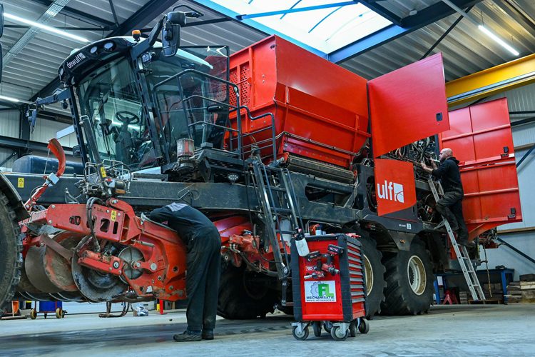 In de werkplaats van FL Mechanisatie, gevestigd in het Zuid-Limburgse Reijmerstok, staat een Dewulf Enduro klaar voor de jaarlijkse check-up. De machine heeft één seizoen gedraaid op de zwaardere lössgrond. Doordat er in deze regio stenen in de bodem zitten, kan het zijn dat essentiële delen harder gesleten zijn dan wanneer de Enduro in zand- of kleigrond zijn werk gedaan zou hebben. Daarnaast speelt het weer in het verslijten van onderdelen een enorme rol.