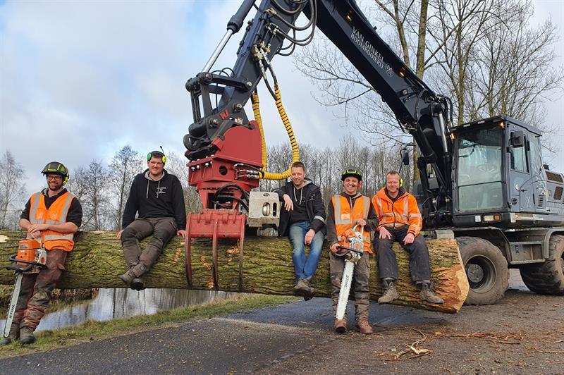 In 2005 startte Ernst van Ginkel (37) zijn eigen bedrijf in Zevenhoven (Zuid-Holland). Van Ginkel had inmiddels de nodige ervaring opgedaan bij eerder genoemd bosbouwbedrijf die steeds vaker klussen ver weg aannam zoals in Suriname en Brazilië. “Ver van huis werken zag ik niet zo zitten. Steeds vaker nam ik klussen aan van particulieren, bedrijven en gemeentes. Ik was namelijk wel gewend om bomen te rooien. Doordat ik naast een versnipperaar en een vrachtwagen ook een mobiele kraan aanschafte, kon ik efficiënter werken en groeide mijn bedrijf. Na de moeilijke crisisjaren 2008-2009 kregen wij de ‘drive’ te pakken en van het één kwam het ander en kreeg ik steeds meer werk te doen. Ik investeerde in het beste materiaal. Dat vind ik belangrijk om vlot en veilig te kunnen werken. De aanschaf van een grote mobiele kraan om te rooien en een vrachtwagen was in de beginfase een financieel risico. Maar het heeft ons enorm geholpen om te groeien en te concurreren.”
