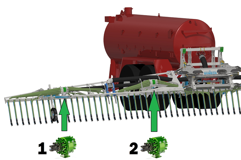 Een plaats-specifieke bemesting met een exacte dwarsverdeling kan binnenkort worden uitgevoerd met een Bomech sleepvoetbemester met vier Alrena exactverdelers. Het nieuwe concept van Bomech BV verhoogt daarmee de efficiëntie van de bemesting met drijfmest, met name op het gebied van een exacte dwarsverdeling en een betere benutting van de aanwezige voedingsstoffen.