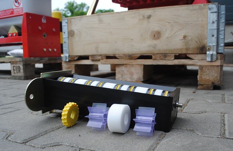 Voor de Rotor-Meter ziet Von Martels een groot potentieel. “Dit is een extra zaaibak waarmee je fijne zaden precies kunt doseren. Dat is toch wel een trend. Als het gaat om grasland rijdt eigenlijk geen loonwerker meer met een zaaibak volgestort met één soort zaad het land op. Kruidenmengsel, klavers, groenbemesters. Het vraagt om flexibiliteit. Deze zaaibak heeft drie uitlopen en kan naar keuze met een, twee of drie een verdelers uitgebreid worden tot maximaal zes.” Aan de onderkant is een eenvoudig te bereiken afdraaimogelijkheid voorzien.