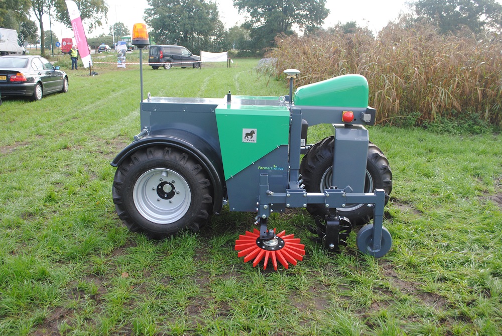 Alles op functioneert op elektriciteit, het nadrukkelijke uitgangspunt van Berkers. De achteras draait op 72 Volt, de vooras op 48 en de aandrijving van werktuigen gaat op 24. De robot wordt ingezet in de fruitteelt, om dichtbij de bomen te schoffelen. Met gps en cameratechniek tot zeven centimeter nauwkeurig. “Het begint steeds meer op een werkpaard te lijken”, lacht Berkers.