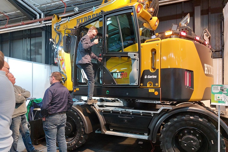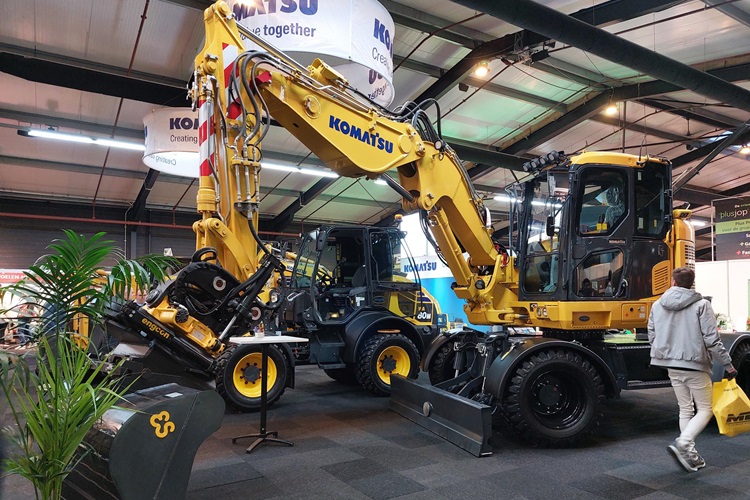 De Komatsu-bandenkraan was niet te missen op de beurs. Met een kleine draaicirkel is de Komatsu PW 138 MR geschikt voor smalle werkruimtes. Daarnaast ligt het brandstofgebruik laag, dankzij een geavanceerd brandstofsysteem in de Komatsu Stage V motor. Hierbij zijn de werksnelheid en hydrauliekpompen naadloos op elkaar afgestemd. En, niet te vergeten, chauffeurs kunnen aan de slag in een ruime en comfortabele cabine.