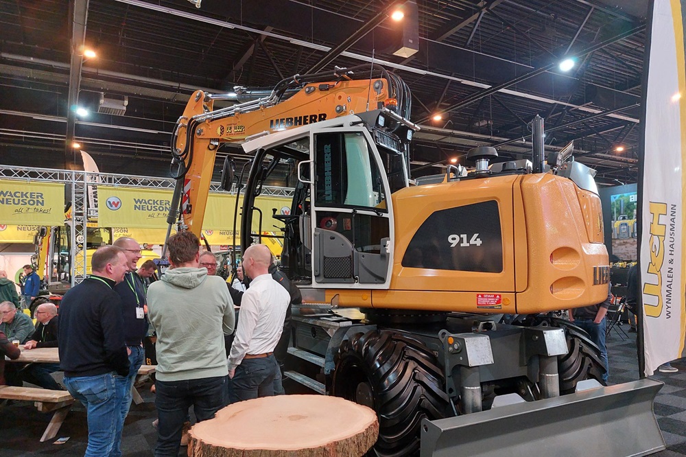 De Liebherr 914 staat centraal op de stand opgesteld.