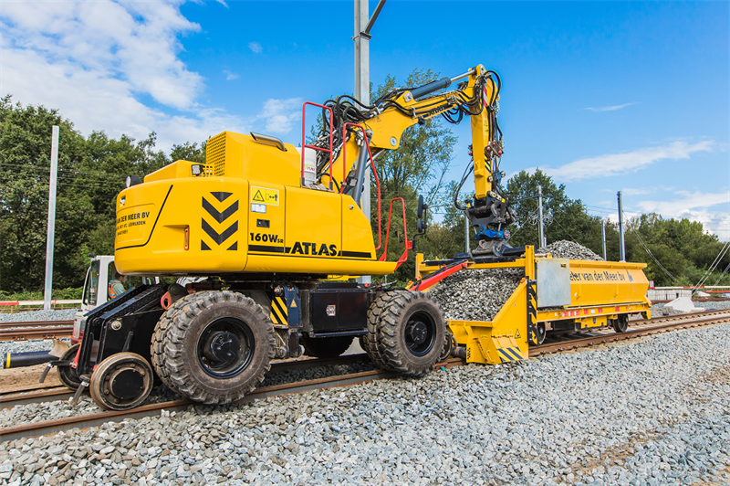 Sinds enige tijd is Peter van der Meer uit Leimuiden de trotse eigenaar van een Atlas 160WSR spoorwegmachine. Mede door een goedkeuring voor het lokale spoor (tram en metro), Nederlandse spoor (ProRail) en Belgische spoor (Infrabel) is Van der Meer zeer flexibel inzetbaar met deze Atlas.