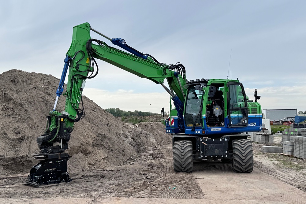 En aan die volledig uitgeruste Hitachi hangt nu ook een trilblok van Steelwrist. Zo kan deze machine nu ook voor grondverdichting worden ingezet, en dat als eerste in Nederland.