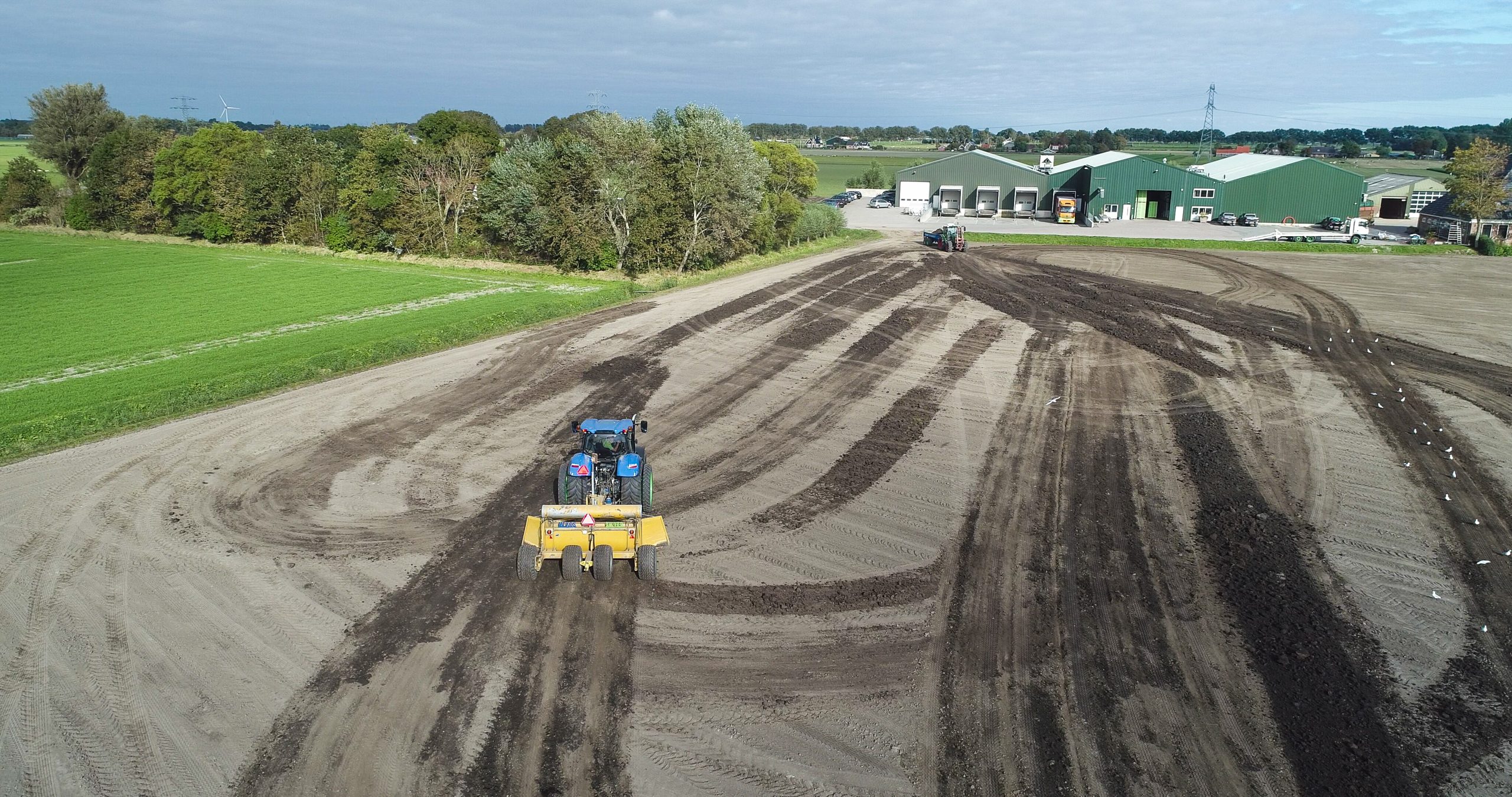 Arthur Veldman vertelt: “Op dit perceel (in Heerhugowaard) stond vorige week nog bladgroente. Morgen wordt er groenbemester gezaaid en nu brengen wij er een nieuwe laag grond op en kilveren dit. Daarnaast zijn wij op het grasland ook dikwijls te vinden. Zo hebben wij momenteel bij het recreatiegebied Park van Luna ook ca. 40 ha gras los liggen. Dit moet nog gewierst en in balen geperst worden. Voordat er regen komt, moet er dus worden gekilverd en het gras moet binnen zijn. Dus we zijn lekker druk.”