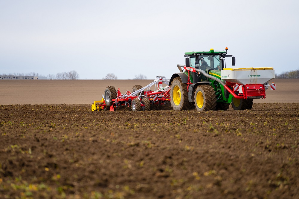 Pöttinger heeft de getrokken stoppelcultivator Terria gecombineerd met de fronttrechter Amico F om zo nog efficiënter te kunnen werken. In de toekomst zullen middelen wereldwijd nog doelgerichter en efficiënter moeten zijn ingezet. De stappen voor grondbewerking en gelijktijdige bemesting kunnen nu in één werkgang zijn voltooid.