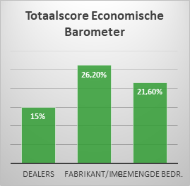 Fedecom heeft de kwartaal-metingen vervangen voor een halfjaarlijkse barometer om de trends wat beter in beeld te hebben. De gemiddelde totaalscore van de respondenten weerspiegelt een positieve stemming in de branche, waarbij er verschillen zijn tussen de verschillende groepen. Er is onderscheid gemaakt tussen de dealerbedrijven (50% van totaal bedrijven), de fabrikanten/importeurs (30% van totaal aantal bedrijven) en de gemengde bedrijven (20% met zowel wederverkoop, service als constructie). De fabrikanten/importeurs zijn positiever gestemd dan de dealerbedrijven. De gemengde bedrijven zitten daar tussenin.