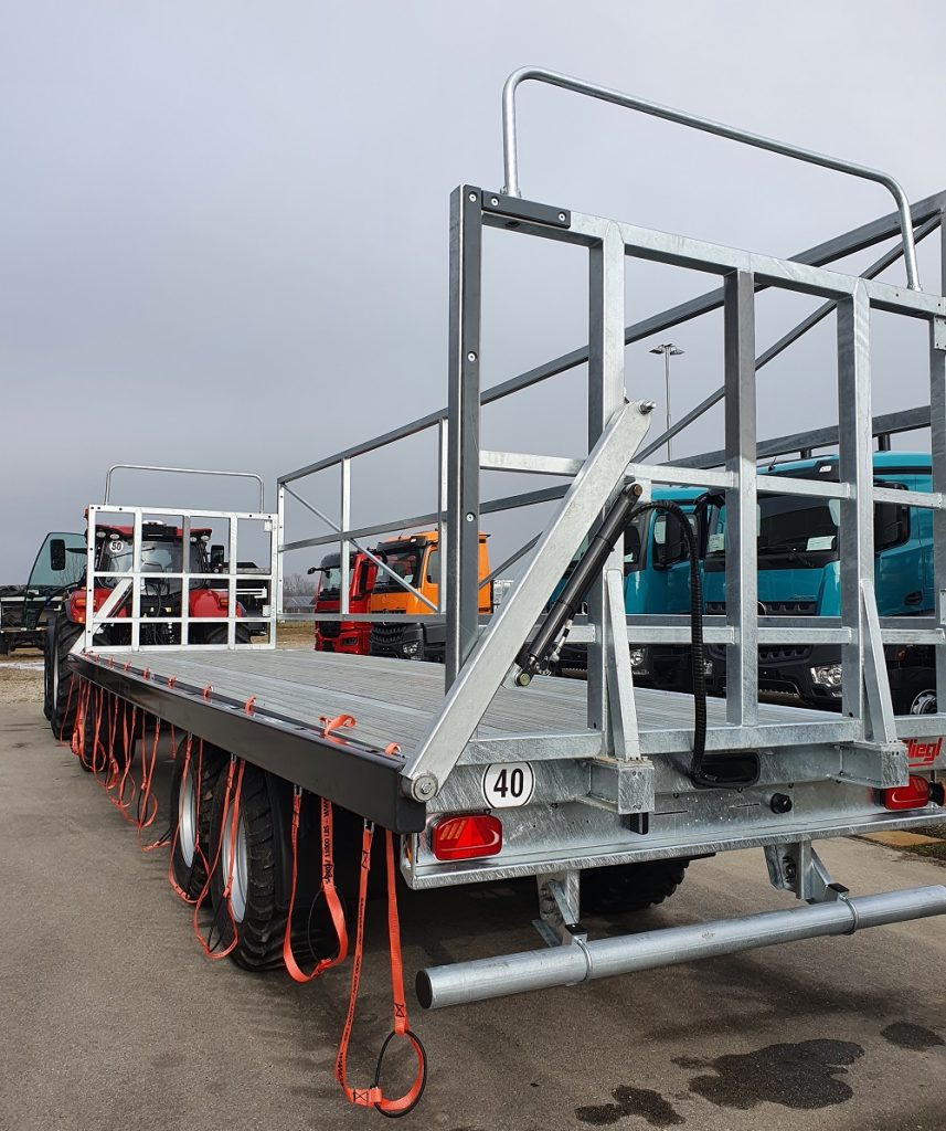 Verder kunnen de Fliegl wagens voorzien worden van ladingbeveiliging, maar ook alleen met hekken, of naar uw wens. Voor gewichten vanaf 8000 kg tot 24000 kg heeft Fliegl de gewenste wagen. Zoals heel veel producten van het Duitse Fliegl zijn ook deze balenwagens volledig gegalvaniseerd. De bodem bestaat altijd uit gegalvaniseerde antislip profielplaten waardoor er ook geen water kan blijven staan op de bodem. De wagens met ladingbeveiliging worden zo gemaakt dat u ook met geopende hek(ken) met de wagen kunt rijden.