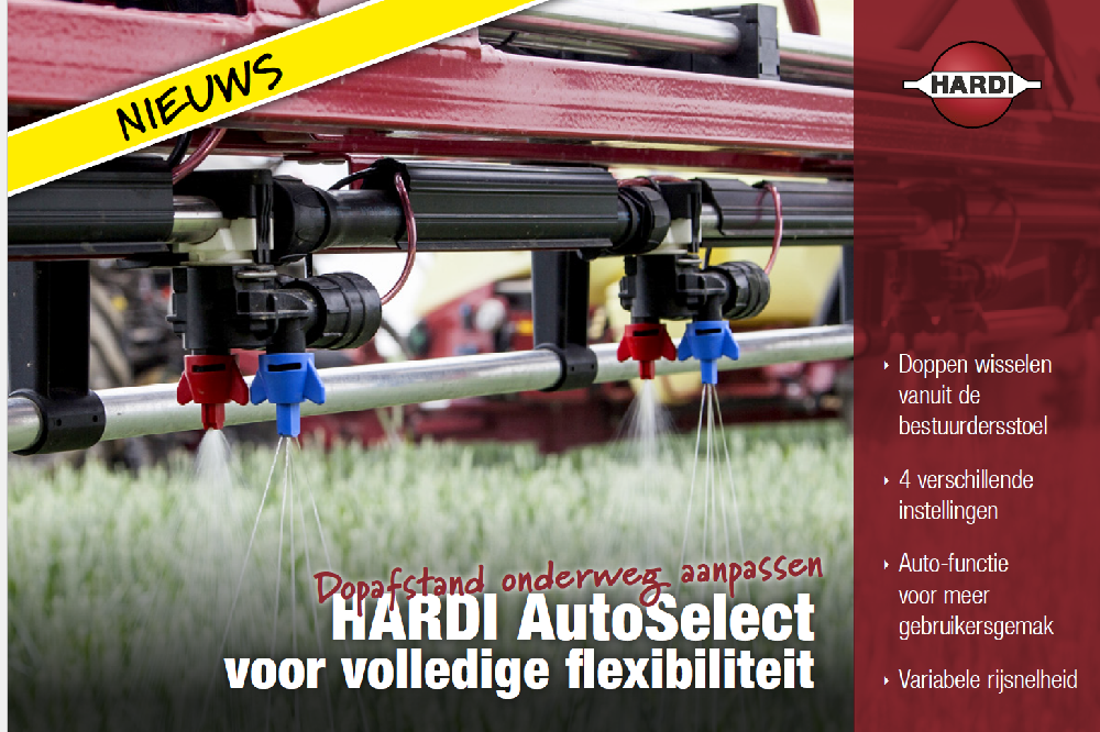 Tijdens Agromek 2016 introduceerde HARDI pneumatisch aangestuurde spuitdophouders, waarmee de bestuurder kan beslissen of hij wil wisselen tussen 2 doppen, of beide tegelijkertijd wil gebruiken. Op de kopakker of in gevoelige bufferzones kunt u bijvoorbeeld één driftreducerende dop gebruiken, en voor de rest van het veld een ”normale” spleetdop of LowDrift dop. Bovendien kunt u inspelen op plotselinge veranderingen in de weersomstandigheden en tijdens het spuiten voor andere doppen kiezen.