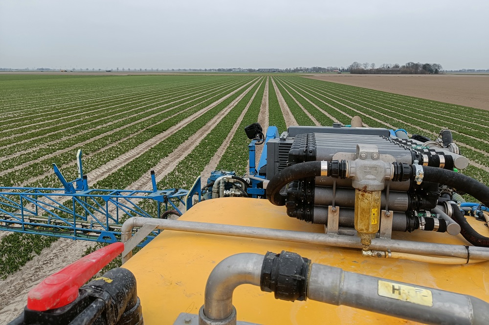 Uiteindelijk zijn echter het etiket en de techniek veel belangrijker. Dat geldt ook voor de snelheid waarmee je rijdt. Wettelijk gezien mag acht kilometer per uur, maar het is zo afhankelijk van de weersomstandigheden en het gewas. Maar we gaan niet sneller rijden om de indringing te verhogen of langzamer rijden om emissies te voorkomen. We kiezen voor de snelheid die bij de bespuiting en de omstandigheden past. Voor ons ligt die over het algemeen rond de vier kilometer per uur.”