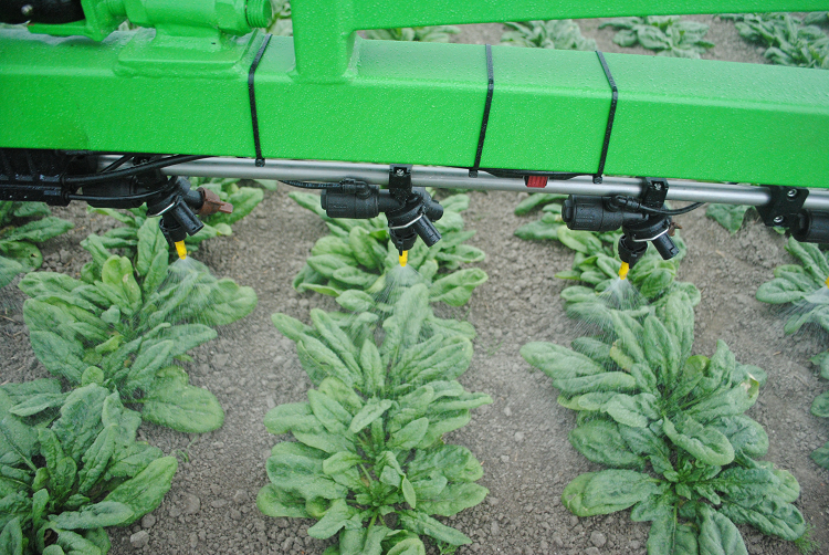 Op de veldspuit zit een F3000-tank met een maximum inhoud van 3.250 liter met 650 liter schoonwater. De spuitboom is vervaardigd uit hoogwaardig staal, S355. De doppen zitten om de 25 centimeter. Het gaat doorgaans om 02-doppen. Voor bieten gaat Hospers de oranje IDK 90-01 (90 tophoek en 01 doseeropening) gebruiken. “Het druppelspectrum van de 02 is daarvoor te grof.” De spuit is ‘nog’ niet voorzien van kapjes of sleepdoek vanwege de kosten. “Bovendien zorgt het er voor dat de boom onrustig wordt, omdat wind bij ons gewoon altijd een factor is.” Toch sluit Hospers niet uit dat hij een dergelijke aanpassing met het oog op wet- en regelgeving door gaat voeren.